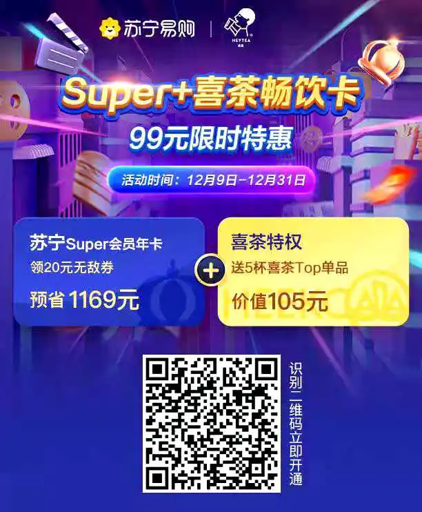 谁的羊毛在飞 苏宁Super会员X喜茶会员=99元/年苏宁Super现在每周送20元无门槛优惠券,可以0撸实物。喜茶权益就是送喜茶5杯价值105元,99元可以说稳赚不亏。权益地址:https://sourl.cn/iT5Mdv